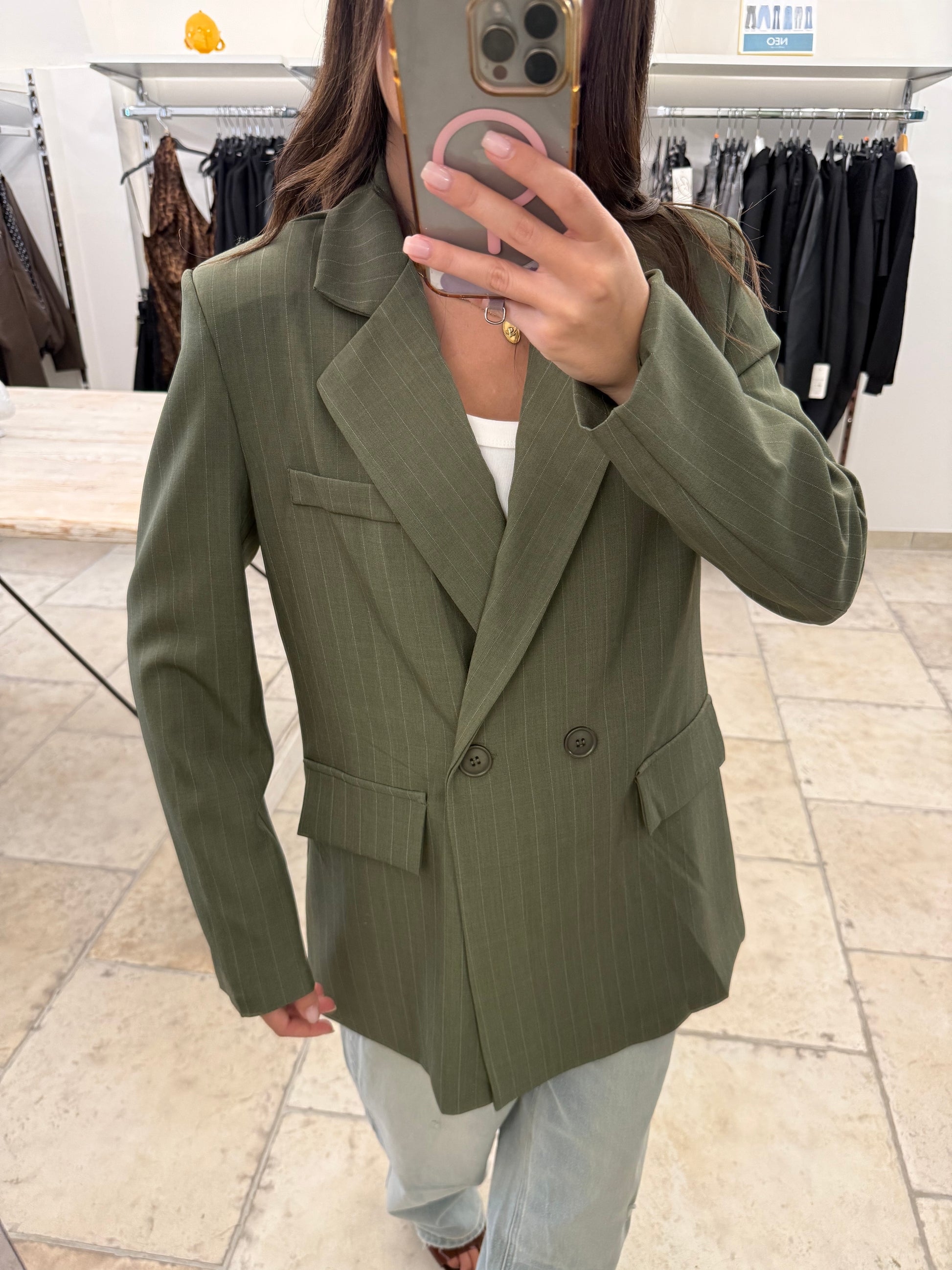 Blazer gessato oliva